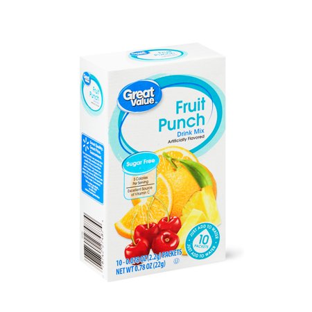 Great Value Sugar Free Fruit Punch Drink Mix 0 78 Oz 10 Count